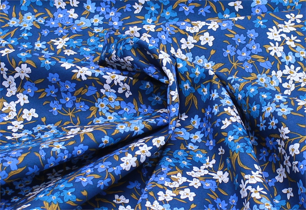 Хлопок Liberty синий с мелкими цветами